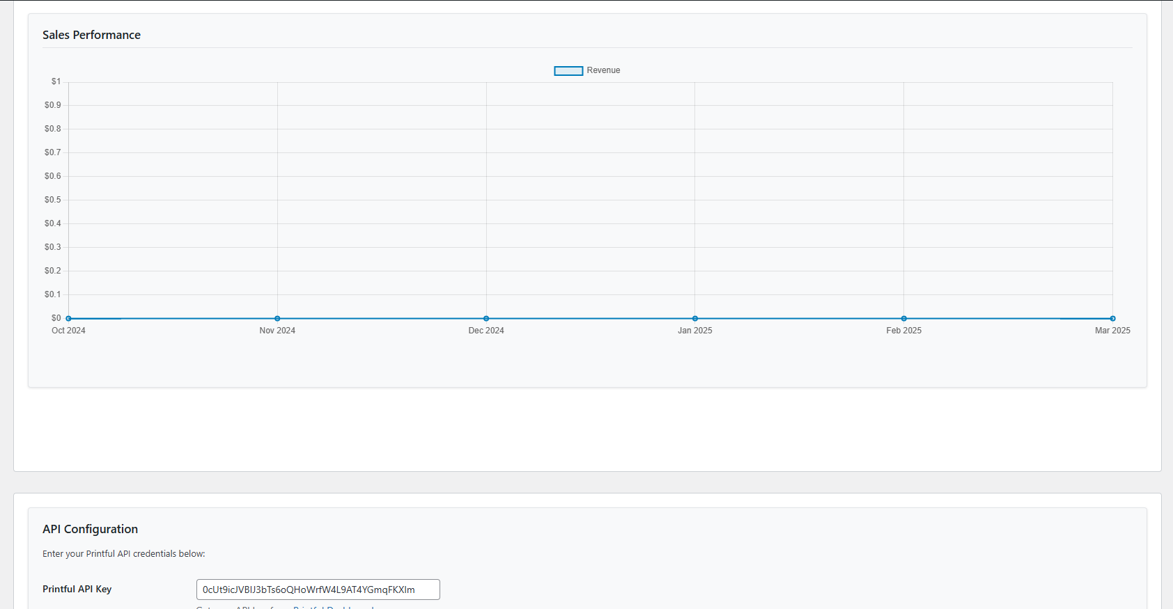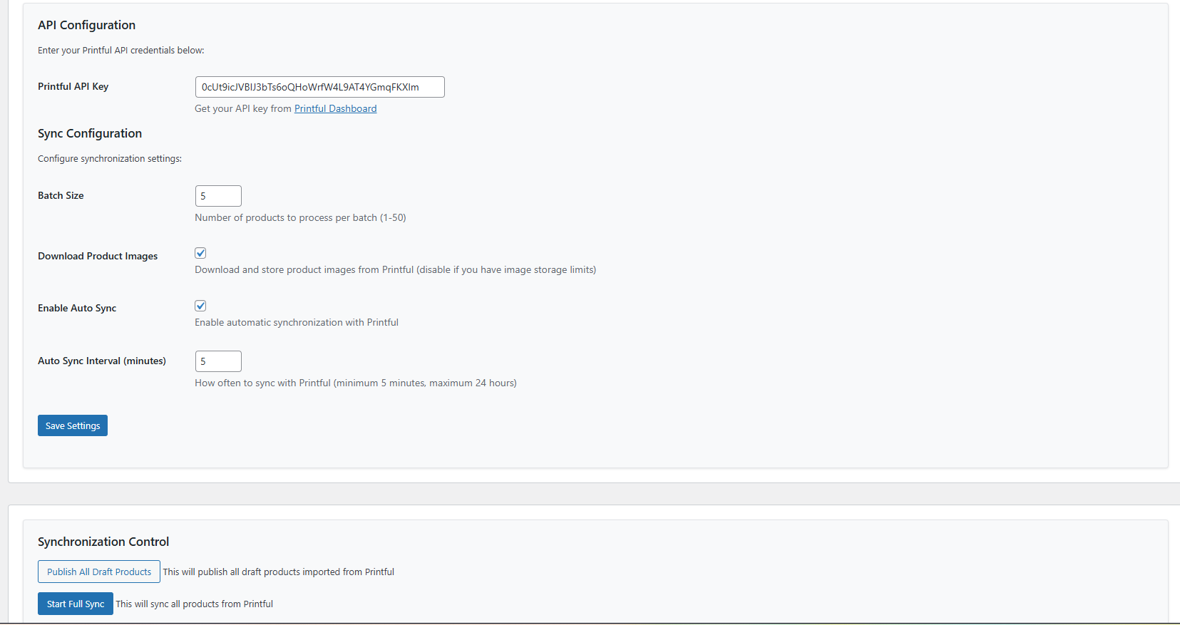 • API Key Validation: Includes an admin notice to alert you if the Printful API key is missing or