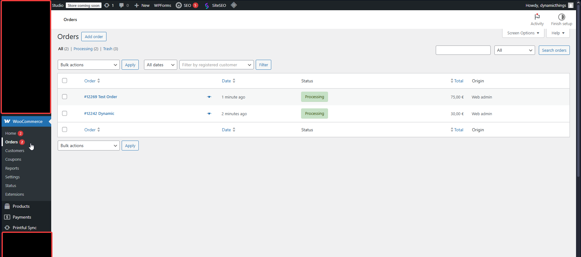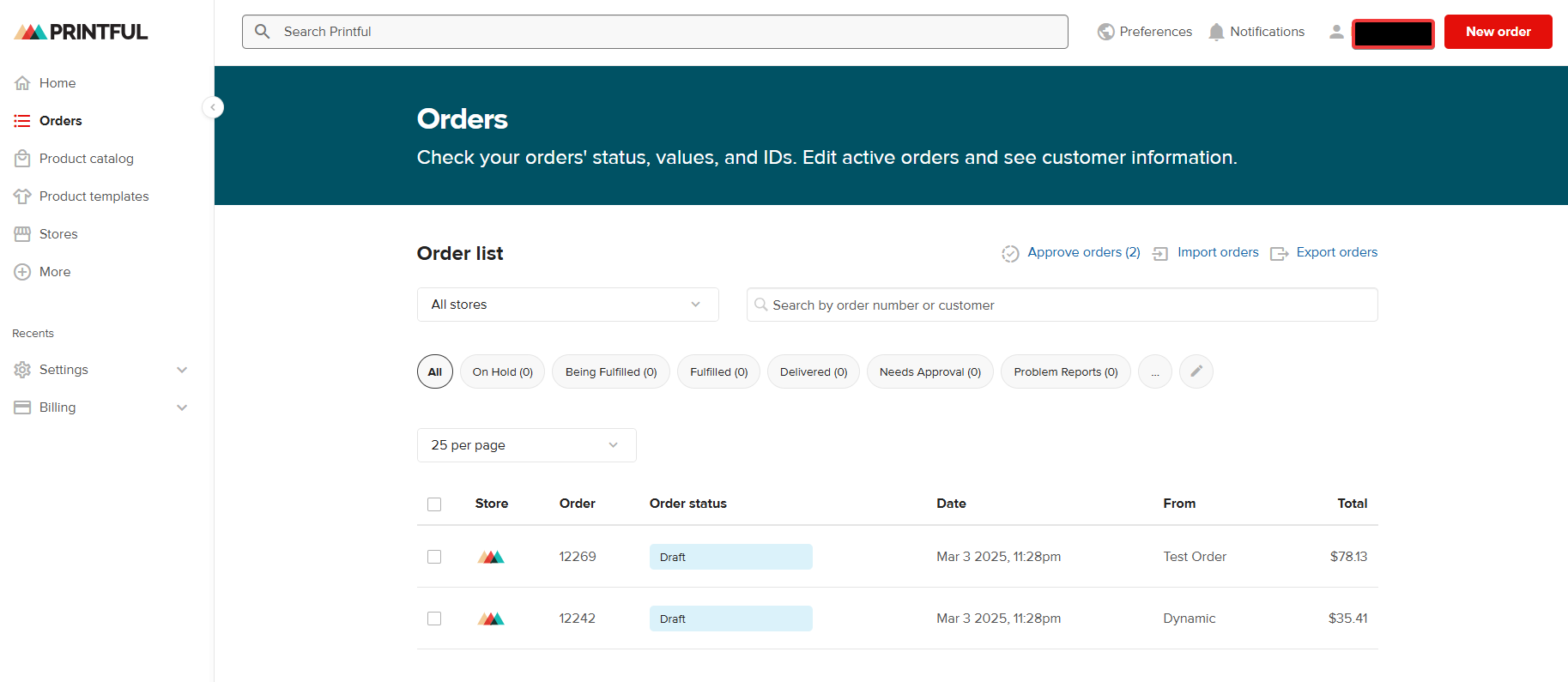 • Printful Dashboard within WordPress: Get a comprehensive overview of your Printful